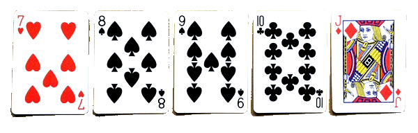 Quinte (Suite/Séquence/Straight) : une main de cinq cartes consécutives sans égard à la couleur